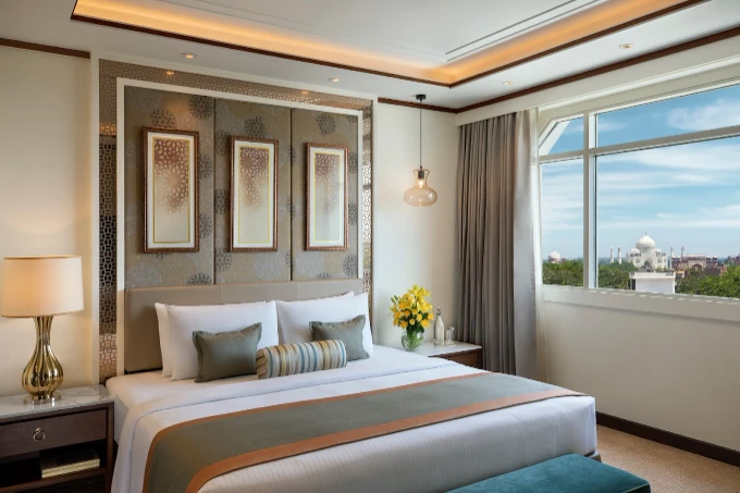 Tajview, Agra - IHCL SeleQtions offers a sophisticated retreat with stunning views of the Taj Mahal, combining luxury with the charm of historic Agra. The hotel features elegantly designed rooms and suites that provide modern comforts while reflecting classic Mughal influences. Guests can enjoy a range of dining options, from gourmet Indian cuisine to international flavors, at the hotel's refined restaurants. The property also boasts a serene outdoor pool, a well-equipped fitness center, and a tranquil spa for relaxation. Unique experiences such as guided tours of the Taj Mahal and cultural performances enhance the stay. With its impeccable service, beautiful setting, and attention to detail, Tajview provides a memorable and immersive escape, making it an ideal base for exploring Agra’s iconic landmarks and vibrant culture.